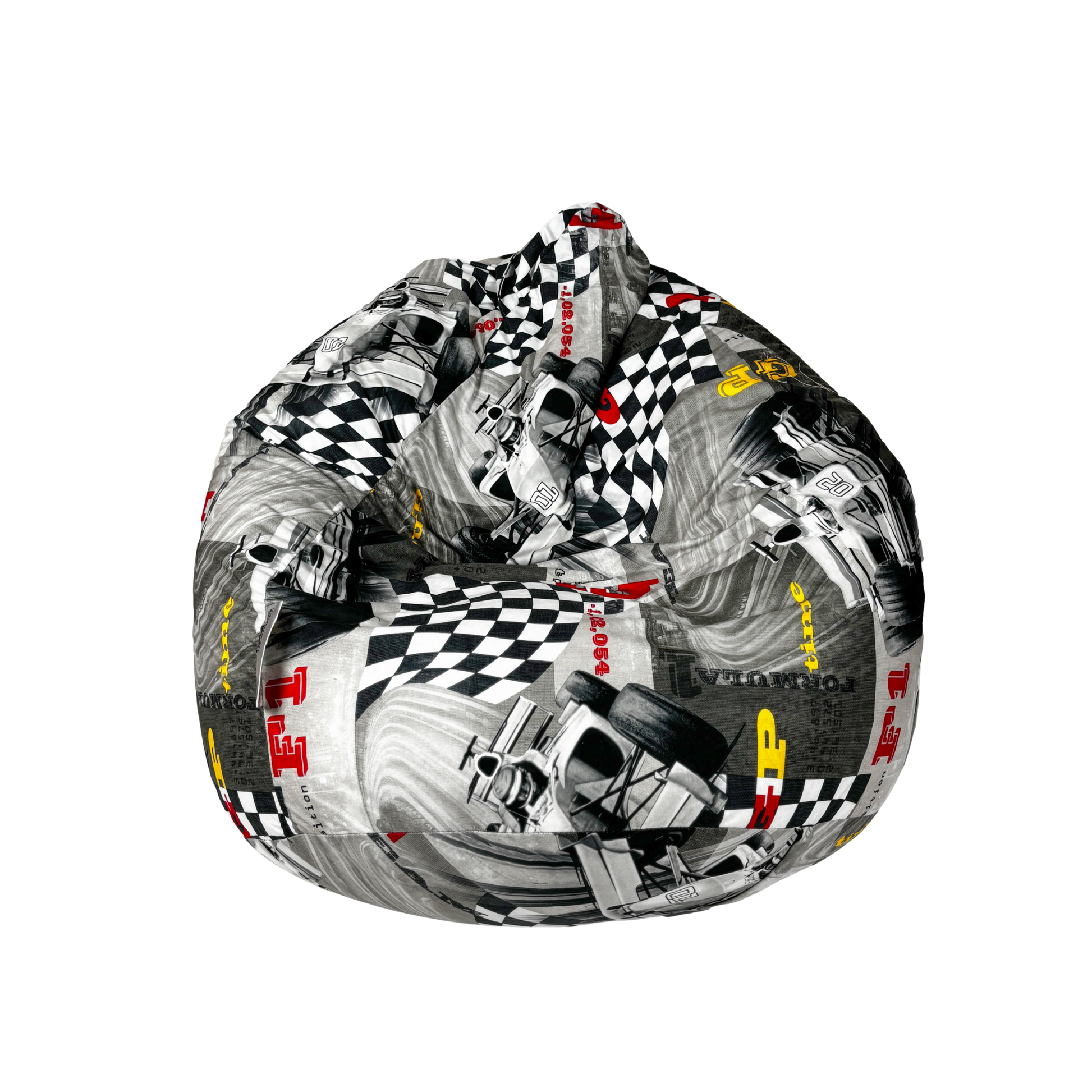 Fotel dostępny jest w dwóch rozmiarach: małym - idealnym dla młodszych dzieci oraz dużym - dla starszaków, nastolatków i dorosłych kibiców motorsportu. Wnętrze wypełnione granulatem styropianowym dopasowuje się do kształtu ciała, miękko otulając plecy i tworząc wygodne oparcie pod głowę. Dzięki temu fotel świetnie sprawdzi się przy czytaniu, graniu na konsoli, oglądaniu bajek czy transmisji wyścigów.