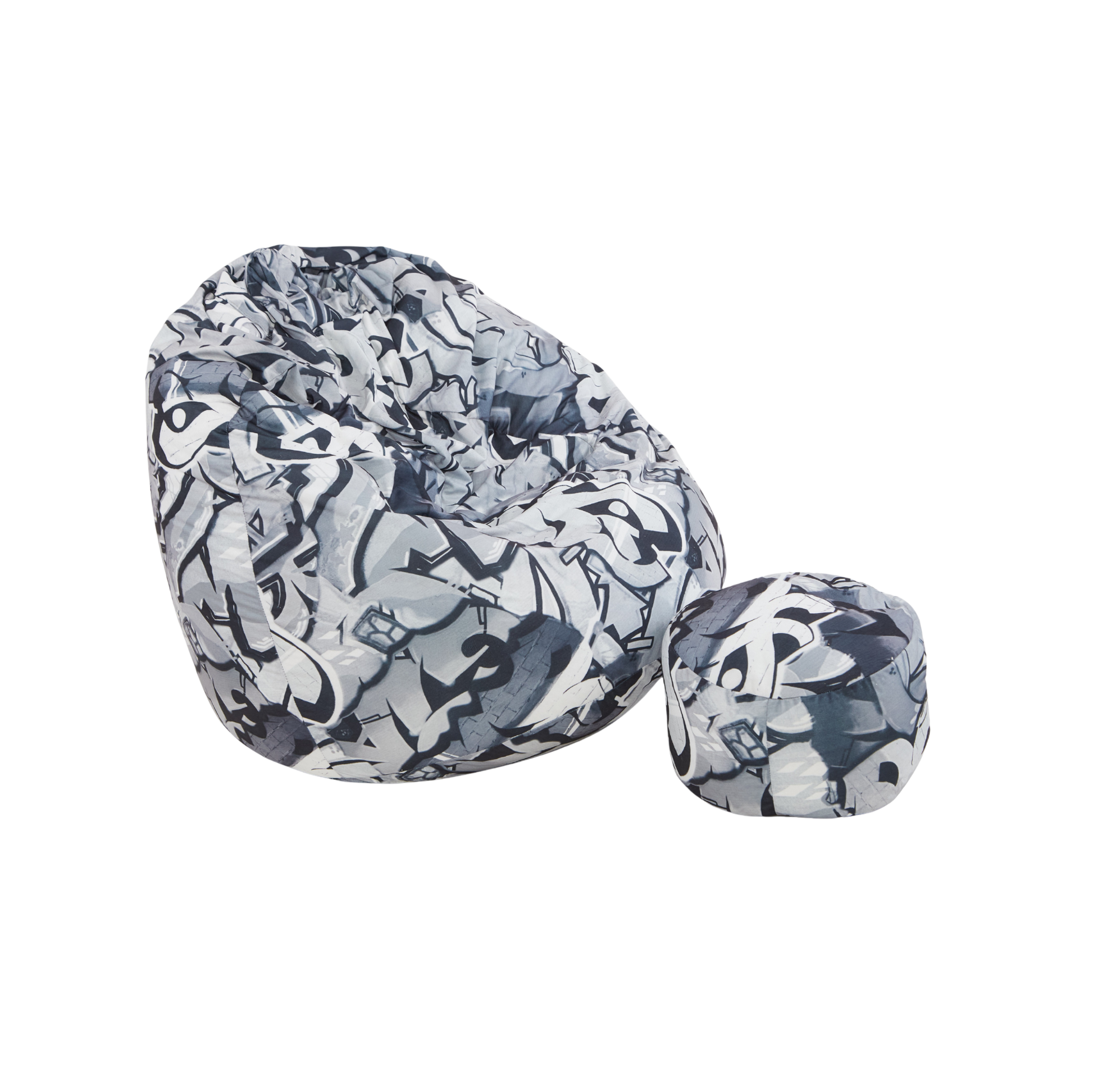 Fotel XL Graffiti to miękka, ogromna pufa o stożkowym kształcie, która otula ciało i pozwala wygodnie zanurzyć się w relaksie. Wykonany z mocnej, pluszowej, drukowanej tkaniny tapicerskiej z atestem PZH, wyróżnia się nie tylko oryginalnym, graffiti-stylem wzorem, ale też wysoką trwałością. W środku znajduje się specjalistyczny granulat styropianowy, dzięki któremu fotel dopasowuje się do sylwetki, dając komfortowe podparcie plecom, ramionom i głowie.